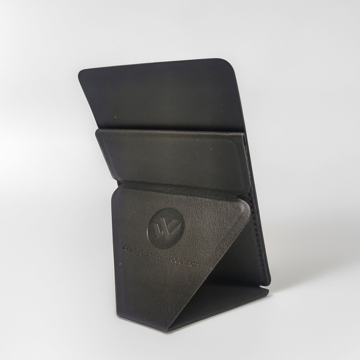 Experience the perfect blend of functionality and style with our WFG Branded Magnetic Phone Stand Flap with Card Slot. Designed for the modern professional, this sleek phone holder is a must-have accessory for anyone on the go. When collapsed, this sleek phone holder fits seamlessly in your pocket, offering versatile landscape and portrait views along with the added convenience of a slot for your commonly used card.